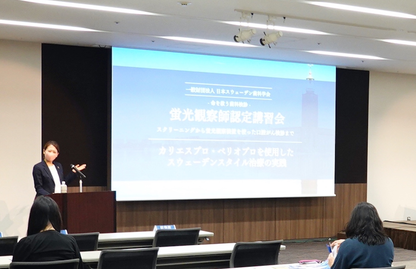 2021年7月2日 品川フロントビルにおきまして、一般財団法人日本スウェーデン歯科学会による、命を救う歯科検診「蛍光観察師認定講習会」・カリエスプロ・ぺリオプロを使用したスウェーデンスタイル治療の実践について、講習会が開催されました。