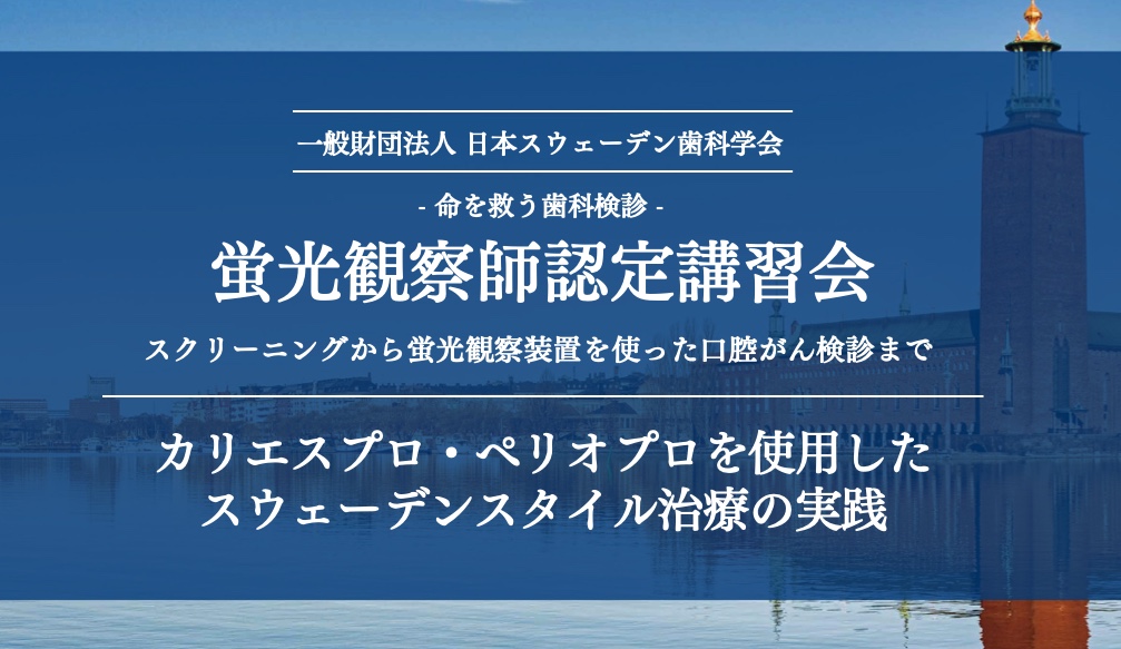 2021年7月2日 品川フロントビルにおきまして、一般財団法人日本スウェーデン歯科学会による、命を救う歯科検診「蛍光観察師認定講習会」・カリエスプロ・ぺリオプロを使用したスウェーデンスタイル治療の実践について、講習会が開催されました。