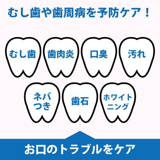 高い殺菌力でむし歯や歯周病の原因をもとから除去します。