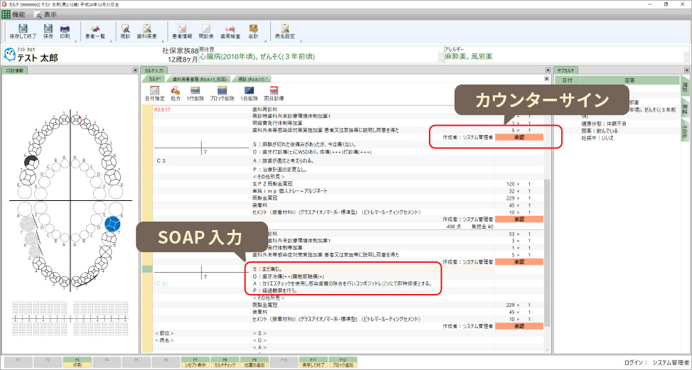 〈 電子カルテ認証機能、SOAP形式でのカルテ作成 〉