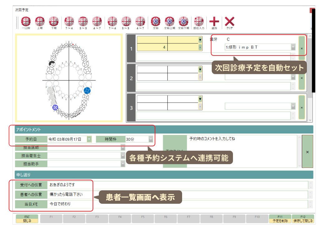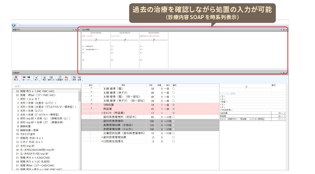 - 治療計画デンタルクリニカルパス作成機能により患者様ごとに最適な治療を実現。