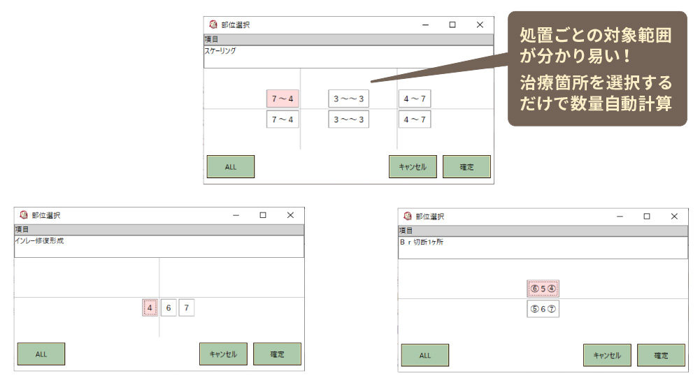 - 歯科専用レセプトチェック機能により診断報酬請求漏れを防止。